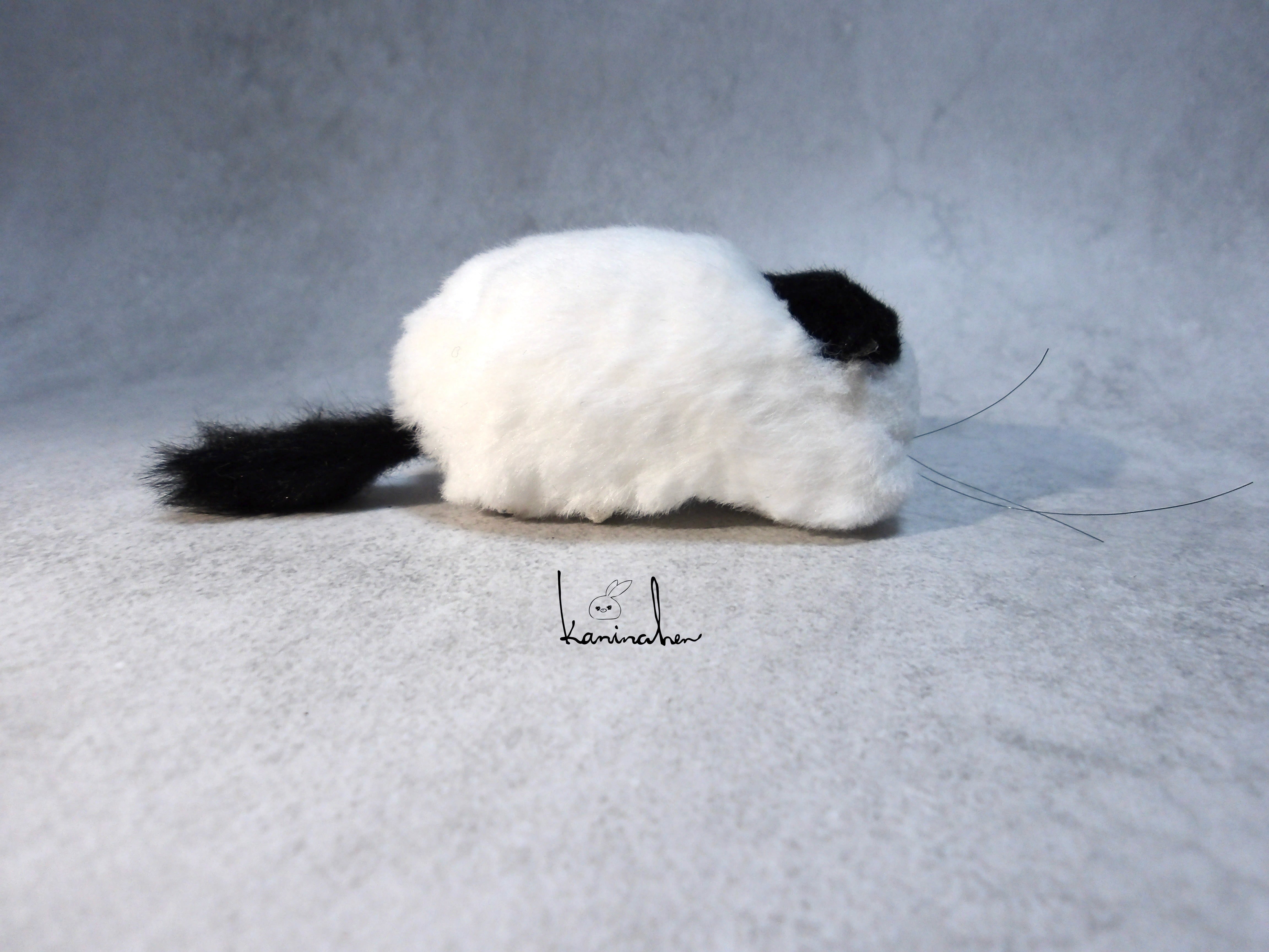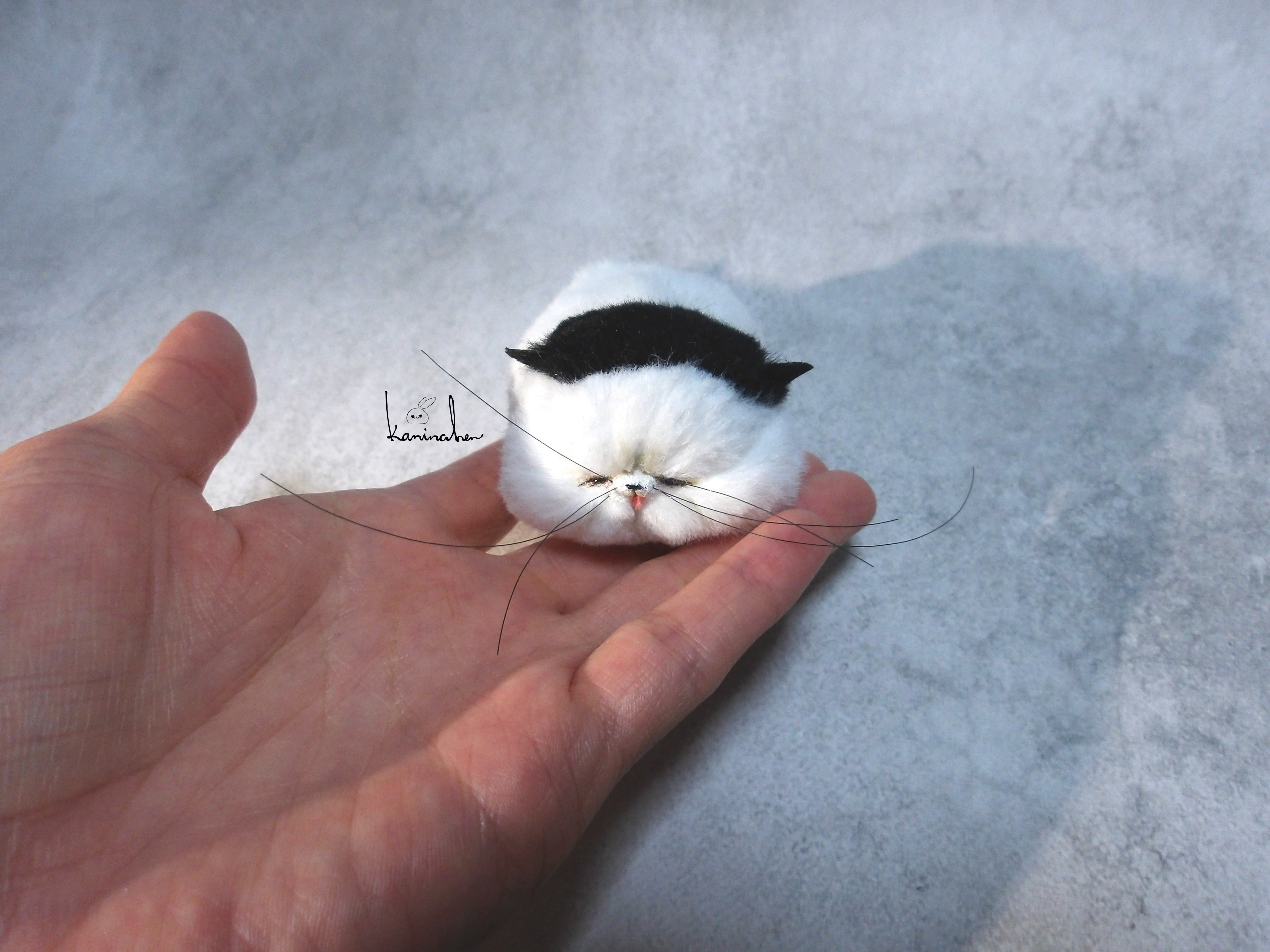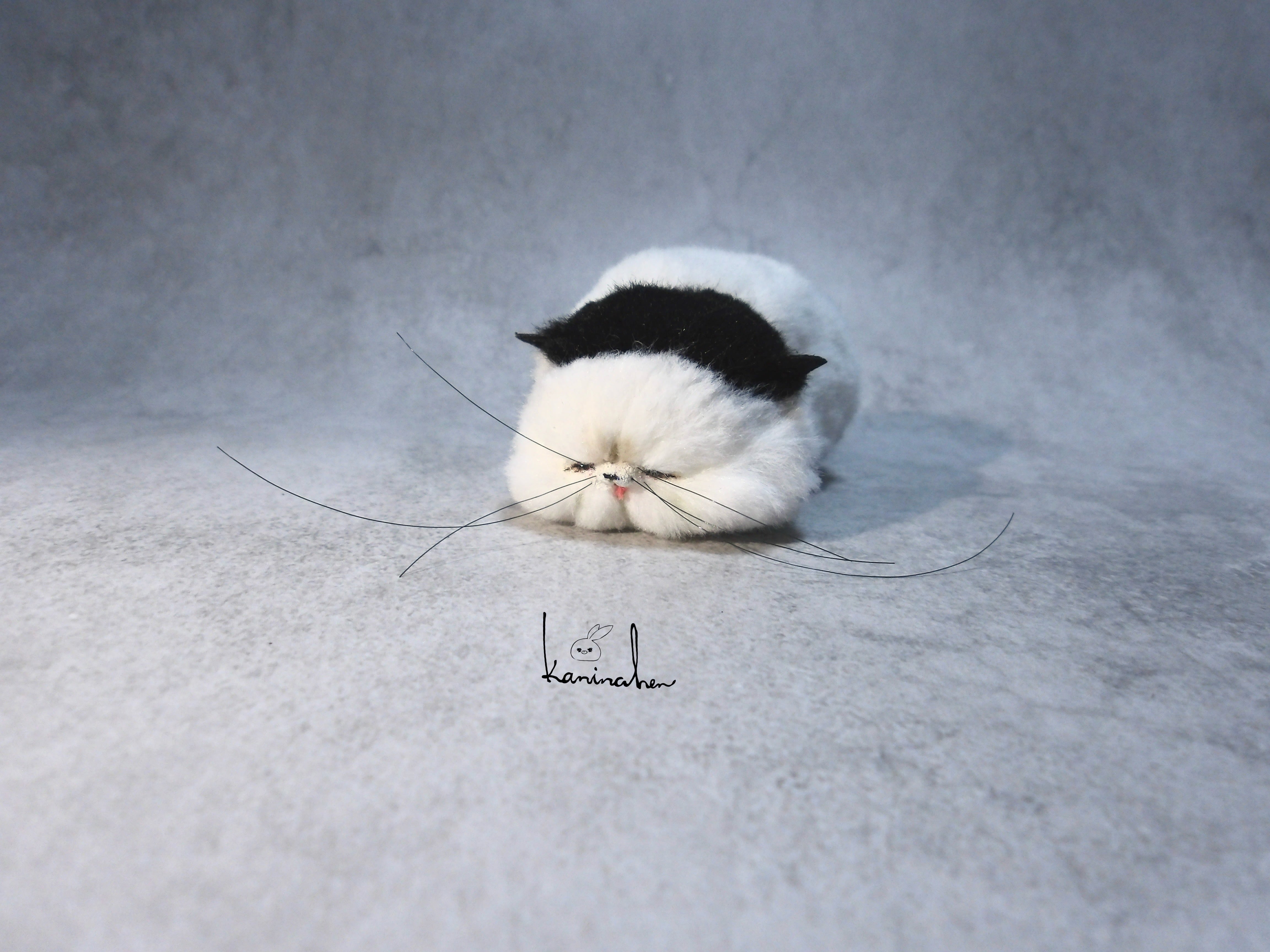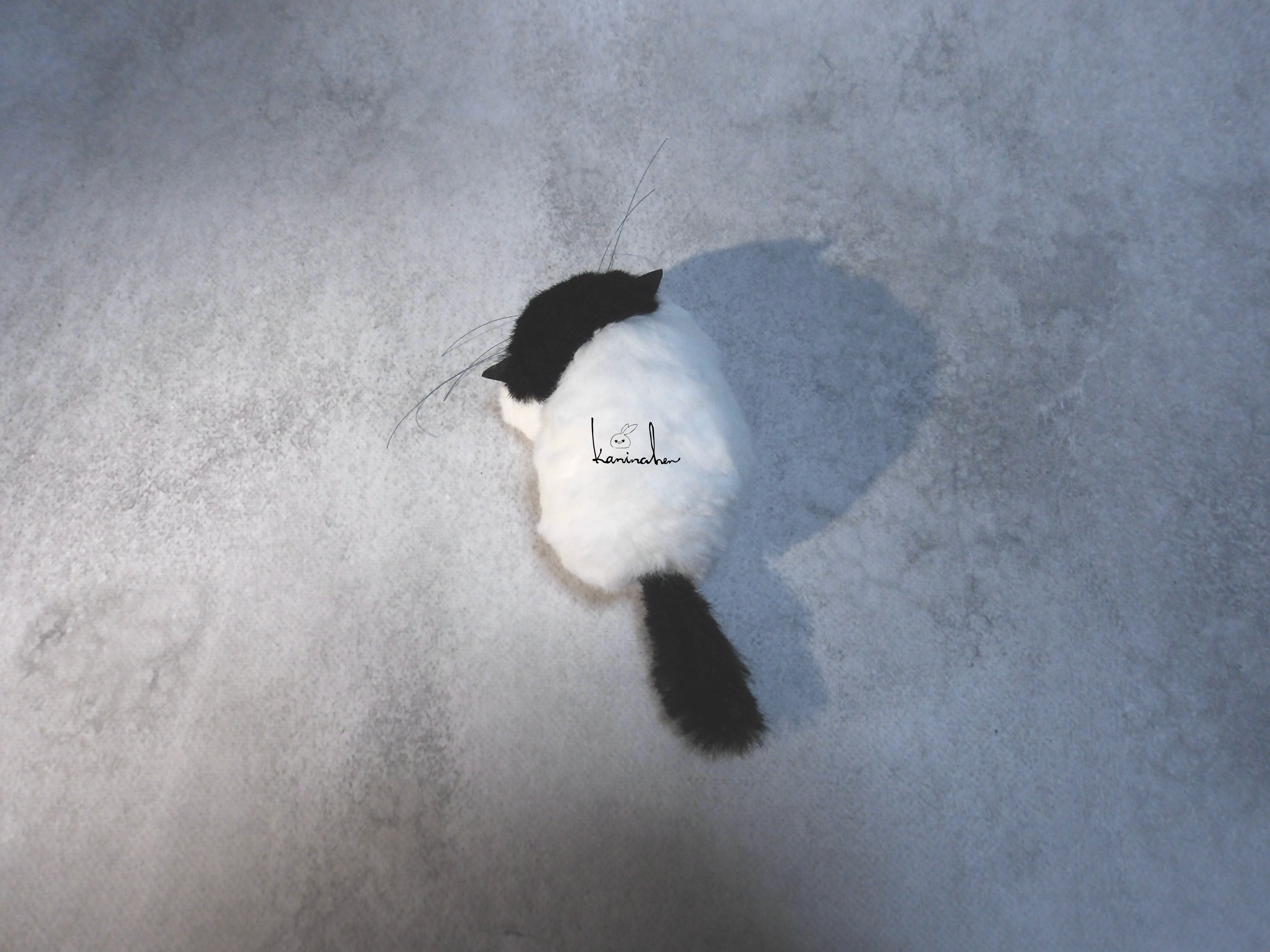 溶けた餅のような姿の小さいネコのお人形です。