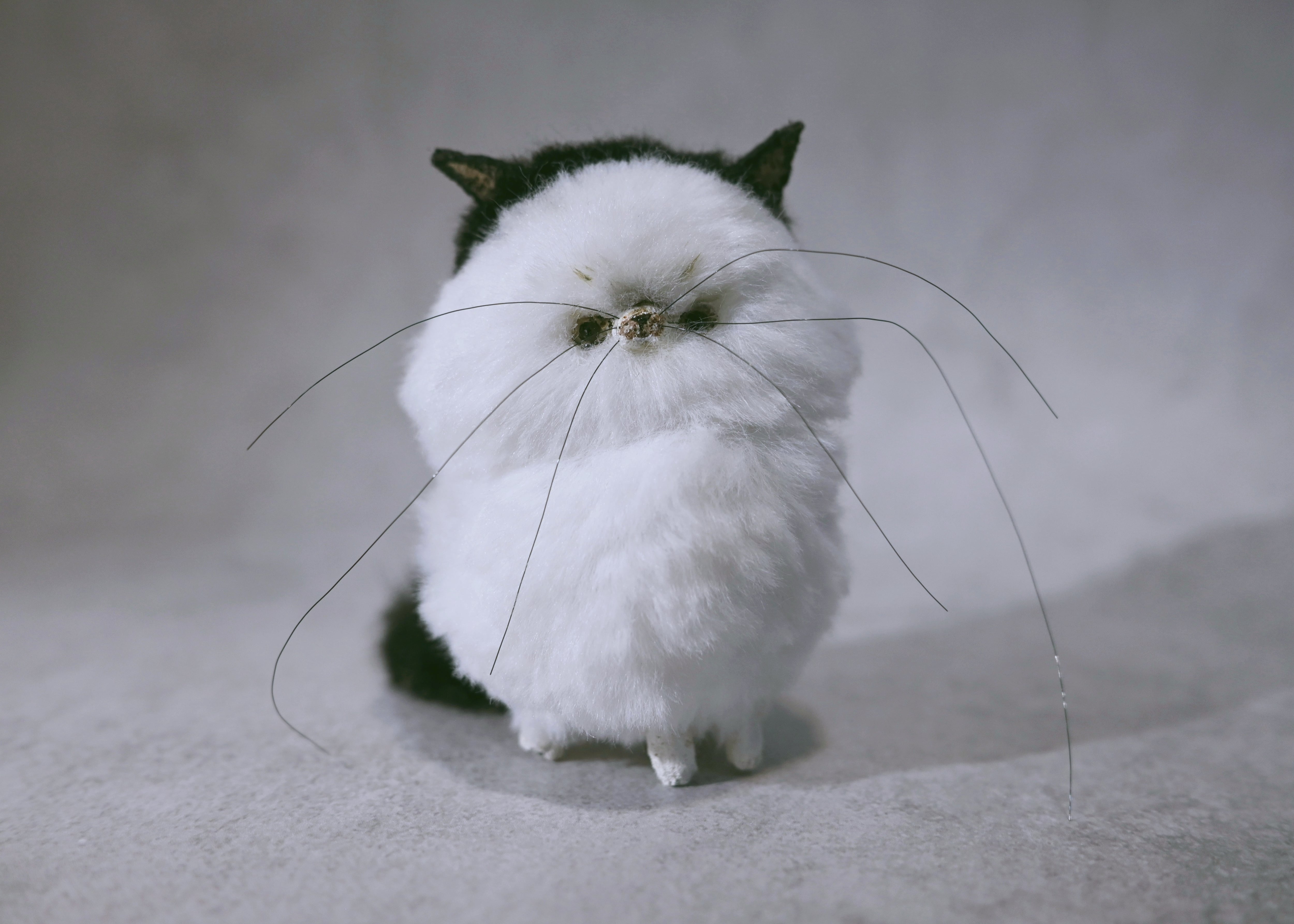 前髪のようにみえる黒い柄が特徴のネコのお人形。